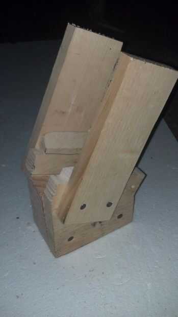 Para los lados de la tolva, corte dos piezas de madera sobre el ancho de la ranura del cilindro y de la altura deseada. Fije a la parte de la base perpendicular a la orientación del cilindro.