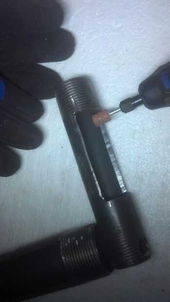 Usando una herramienta giratoria con una piedra de moler, afilar los bordes laterales de la ranura de la tubería más pequeña, tal que el borde que se inclina hacia el interior de la tubería. Si ambos bordes están afilados, la máquina será capaz de cortar en ambas direcciones. Si lo desea, el tubo de mayor diámetro puede afilarse con el borde inclinados hacia afuera. Guantes. No y terminó recogiendo las astillas de metal fuera de mis manos durante 2 semanas.