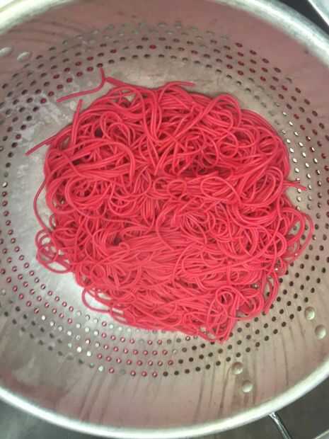 Utilizando una cepa de colador sus fideos para deshacerse de toda el agua!
