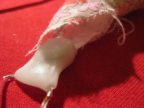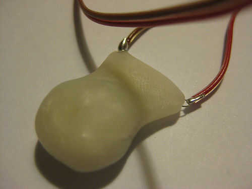 Shapelock es un termoplástico muy cool. Viene en pequeñas bolitas y cuando viertes un puñado de ellos en agua caliente se derretirá y pegan. Están listos para molde cuando transparente. Sacar el racimo de pellets de plástico caliente y sacuda el agua caliente. Molde en forma sólida y luego forman alrededor del motor de vibración pequeño, dejando los dos lazos soldados sobresale. En este ejemplo yo simplemente soldadas a estos anillos para conectar a la traza de la conductora, pero la idea de incorporar el motor en Shapelock es hacerlo lavable (no de agua caliente aunque!) y para que los anillos también pueden ser cosidos a los rastros conductores con hilo conductor. Deshacerse del alambre, que es una buena cosa, en términos de portabilidad. Creo que sí.