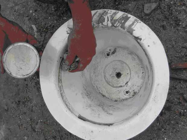 Después de localizar el molde de rotor externo, limpie la cara interior del molde con grasa o aceite pesado rotor externo. Esto asegura un fácil lanzamiento del concreto del molde.