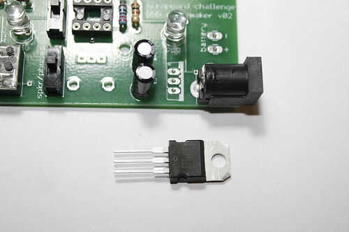 Nota: el 7805 tiende a calentar cuando se utiliza por un tiempo. Tenga cuidado al jugar con el follonero, dependiendo de su fuente de energía, puede estar muy caliente!