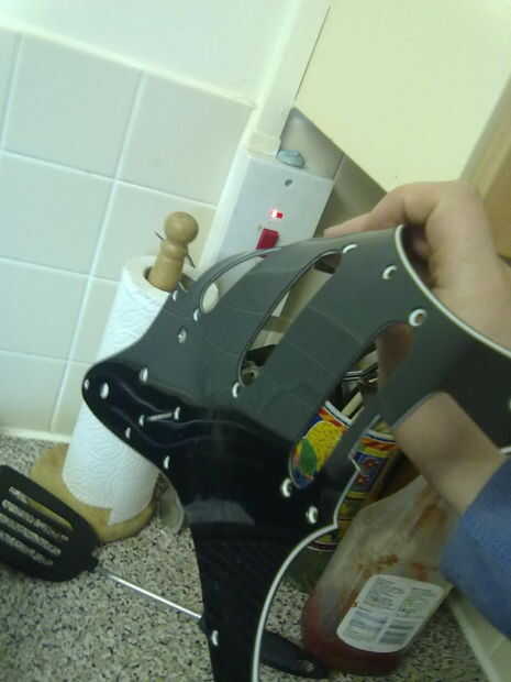 sucedió. La peor pesadilla de cualquier propietario guitarra: el cabezal angular de su querida guitarra se convirtió en el punto de fractura cuando cayó o se golpeó contra una pared.Después de jugar bien en la noche en mi cama, decidí tontamente lo q