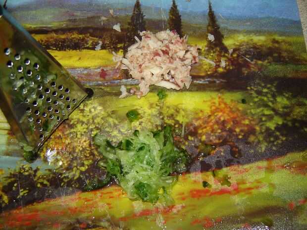 1. rallar pepino de patatas con un rallador de queso para que tenga suficiente para cubrir ambos ojos.
