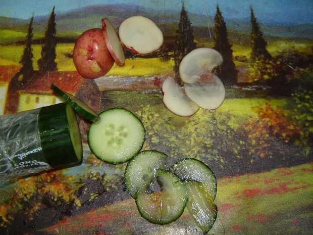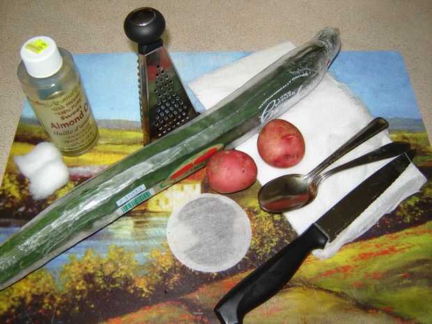 3. aplicar rodajas de patata/pepino en el bajo el área de los ojos durante 10-20min, probablemente desee ser acostado o tendido detrás de esto.