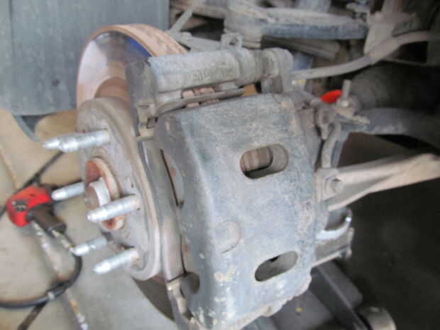 Nota: Sólo hacer una rueda en un momento. Completamente puede expulsar un pistón de la pinza. Entonces usted tendría que sangrar los descansos después de ponerla hacia atrás.
