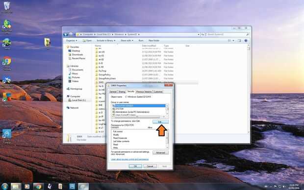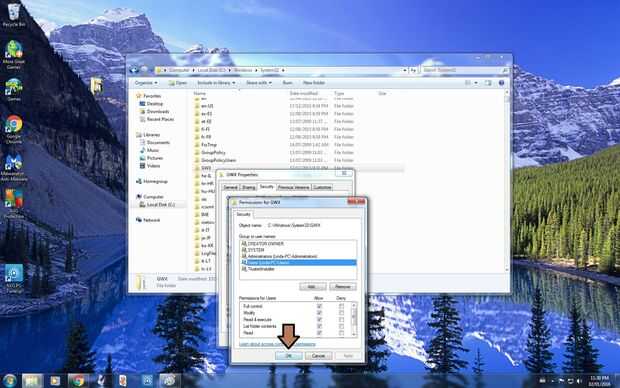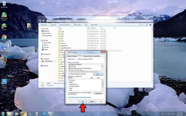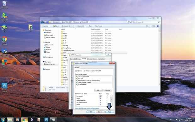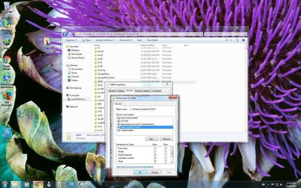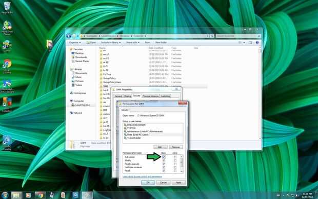 9. concédase permisos completos de Control y los derechos de la carpeta GWX