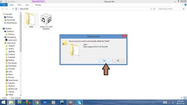 11. eliminar la carpeta GWX de papelera de reciclaje