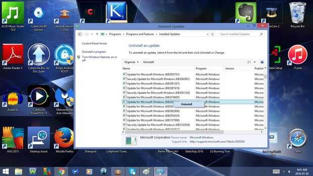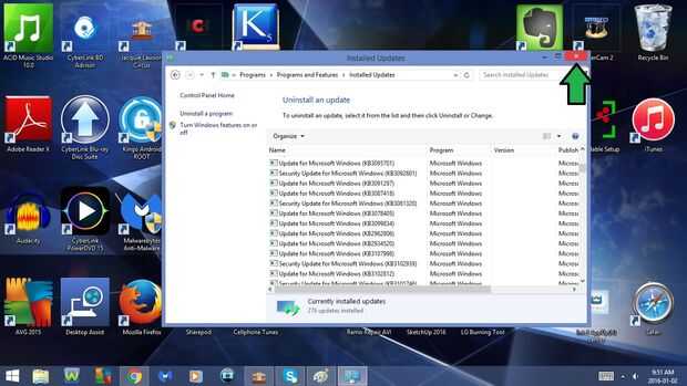 12. desinstalar la actualización
