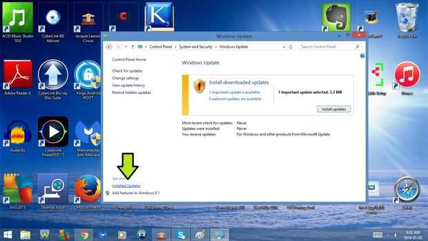 - Haga clic en actualizaciones instaladas