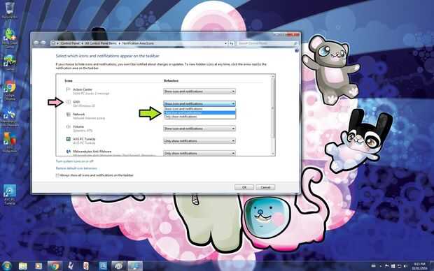3. cambiar el comportamiento de GWX mostrar icono y notificaciones para ocultar icono y notificaciones