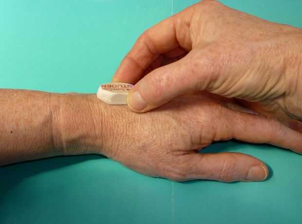 II. Coloque el borrador gastado sobre el ganglio y