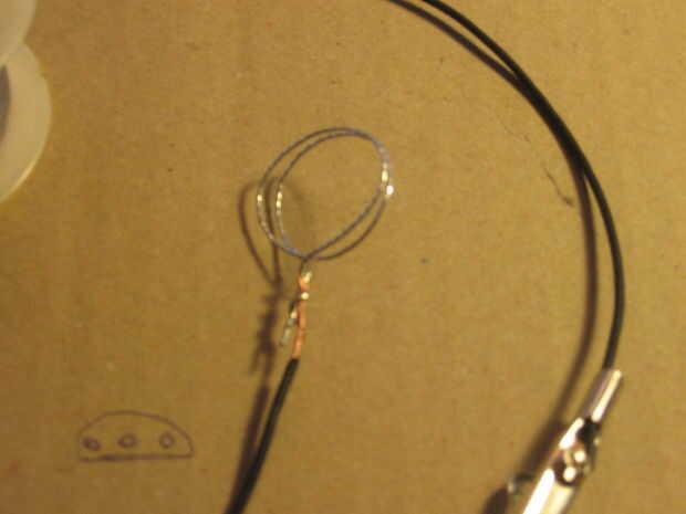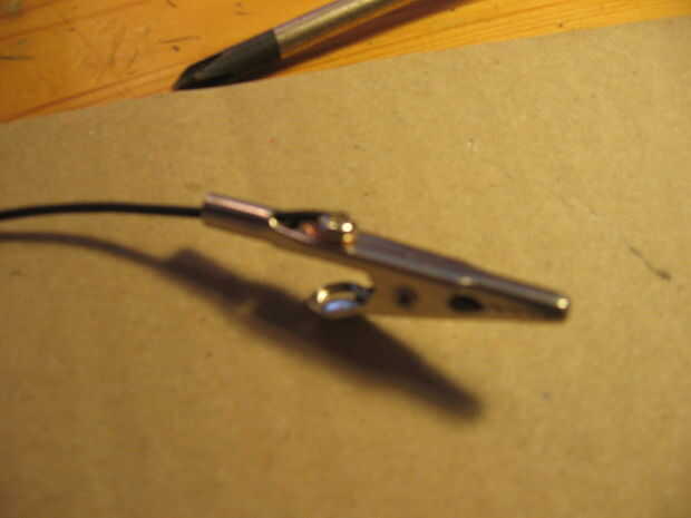 3. Obtenga el Cocodrilo clip en un extremo del alambre y el anillo en el otro extremo de la soldadura.