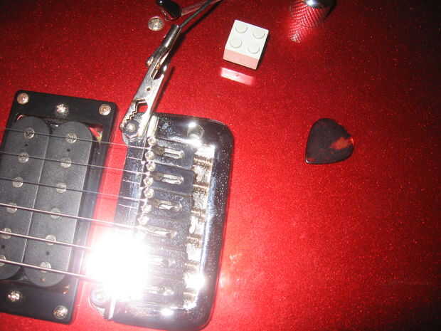 Primer lugar, usted querrá obtener el clip en el puente de la guitarra. Entonces usted puede conseguir el anillo alrededor de su meñique. Disfrutar de su guitarra silenciosa.