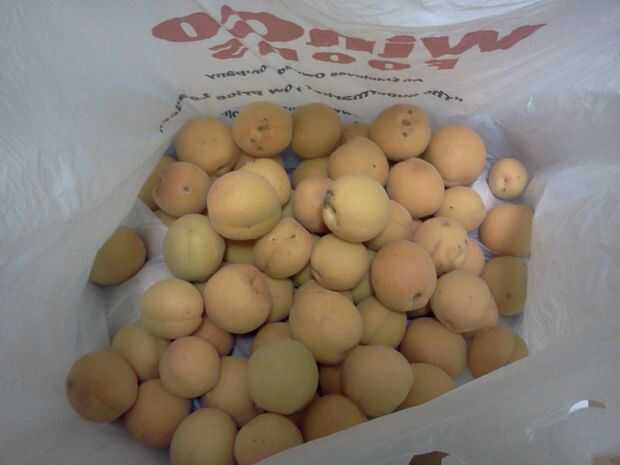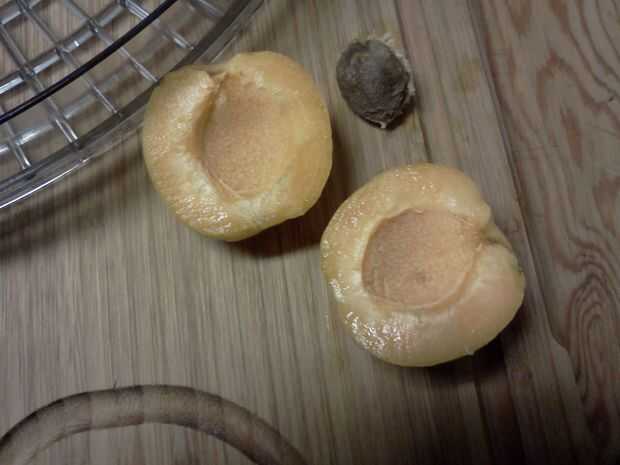 -Usando su cuchillo, mitad los albaricoques y quitar la semilla (usted puede lanzar lejos la semilla o como ponerlo en mi compost)