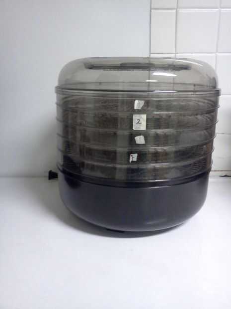 Deshidratador, el mío es un Ronco (verá, he etiquetado como 4 a 5 de mis bandejas para facilitar la lectura y para realizar un seguimiento de rotación)