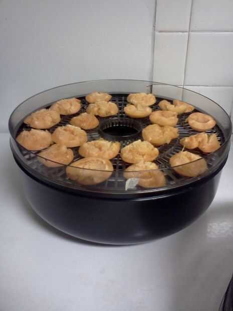 -Colocar revés albaricoques mitades en la bandeja 1 asegurándose de dejar espacio alrededor de cada mitad (necesitan el espacio para deshidratar correctamente) aproximadamente 10 albaricoques fot en cada uno de mis platos... dependiendo del tamaño de