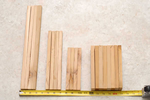Cuatro 16 1/4 "x 1/2" x 3/4" horizontales vigas transversales para las porciones anterior y posterior de la caja