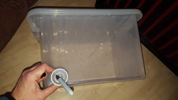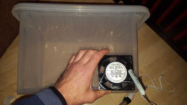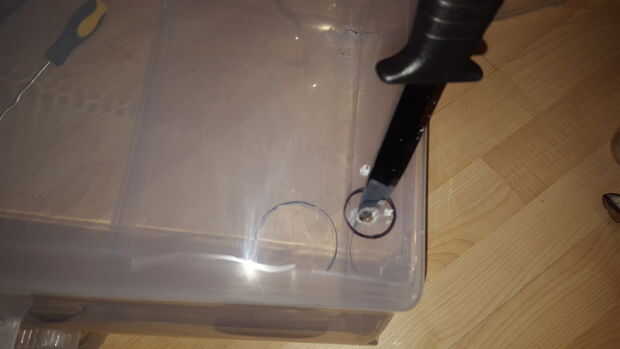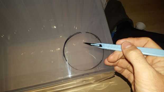 Marcado dos agujeros, uno para el ventilador, la luz, en el extremo inferior de la caja.