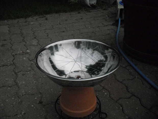 Coloque unas velas unos 4 en el estante del plantador luego coloque la olla sobre la rejilla y coloque el recipiente de metal y con la cremallera y orificio en la parte superior la jarra asegurándose que los orificios son coincidentes por lo que el calor va