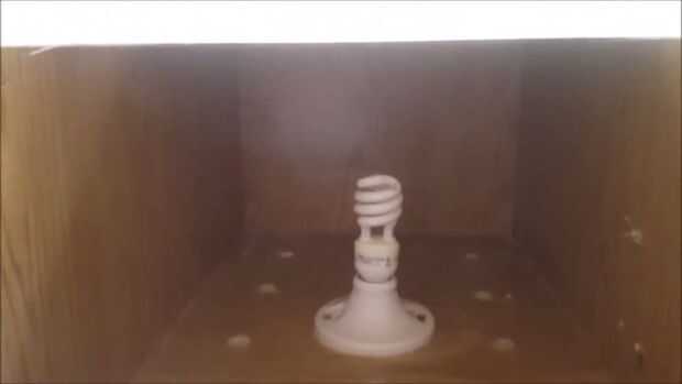 Retire las puertas del antiguo gabinete, (guardar para un proyecto más adelante). I cortar 4 secciones pequeñas de 2 x 4 y atornillado a la parte inferior del gabinete a utilizar como las piernas para que el aire puede llegar a través de la parte inferior. Entonces me di cuenta de cuántos estantes yo podría caber dentro sin hacinamiento, en mi caso fue 4. Luego mide la profundidad de la caja y cortar secciones de la 1 x 4 para caber como soportes del estante. Luego usé el 1 x 4 para hacer un rectángulo de base que se deslice dentro y fuera del gabinete, luego poner alguna pantalla sobre ésos y sujetado con grapas. Ahora tienes tus estantes incorporados. A continuación tomé la pala 1 1/4" poco y perforados unos agujeros de aire en la parte inferior del gabinete, también corté un trozo de madera del tamaño de los estantes hizo y los orificios perforados en eso así, esto irá por debajo de los estantes, por encima de la bombilla. Se montaron la base de luz en el fondo (tengo una bombilla CFL en ella en la foto, usted necesitará utilizar una bombilla estándar).