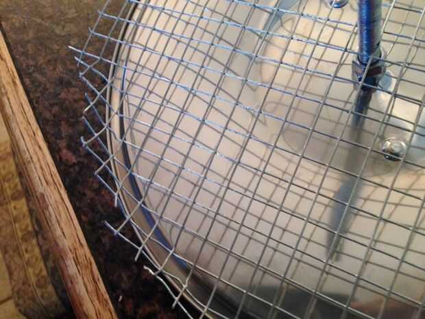 Coloque la malla abajo en la barra y utilice las tijeras para cortar la malla de 1/4" más grande que el diámetro de la tapa. La dimensión actual no es demasiado crítica, sólo trate de mantener redondo.