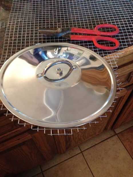 Cortar la varilla para permitir que se extienden desde cerca de la parte inferior de la olla para arriba a través del agujero y dejar suficiente sobresale y Enrosque una tuerca en el sandwich la tapa entre dos nueces al final de la varilla roscada. Para ello antes que corta el cable de malla para que puedan utilizar la tapa para un patrón.