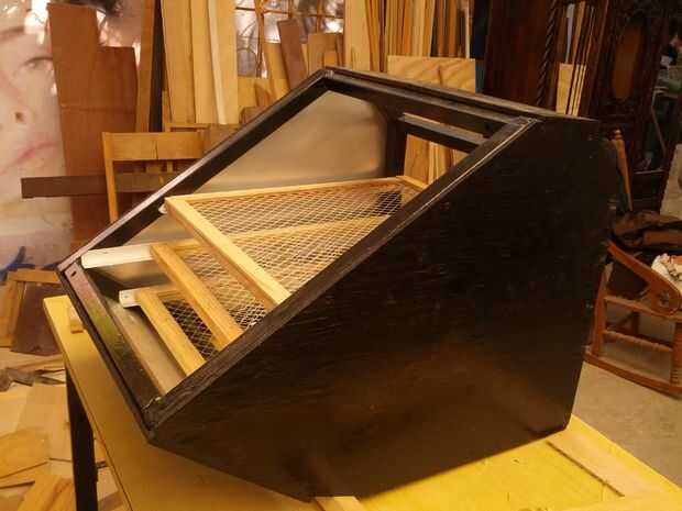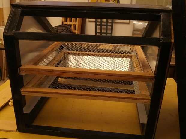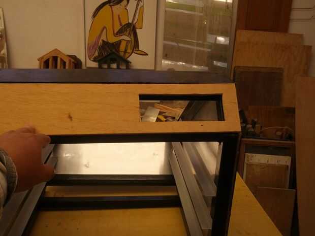 Recuerden utilizar las pequeñas bisagras para colocar la puerta, una vez ver llegado hasta aquí, vamos a colocar unos ángulos de Aluminio al interior de la cámara servirán para deslizar unas rejillas de acero inoxidable, sujetas con los otros marcos de madera, para esto utilizaran los perfiles de ese material de 10 X 10 mm.