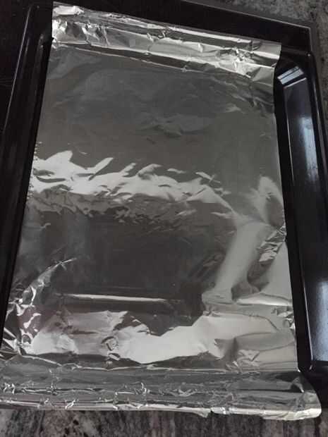 Cortar un pedazo de papel de aluminio ligeramente más grande que la bandeja para hornear
