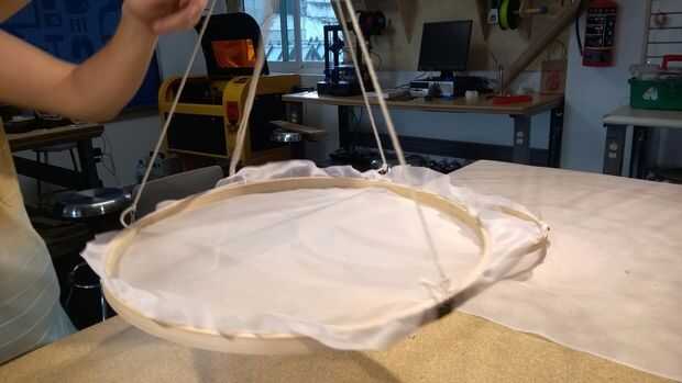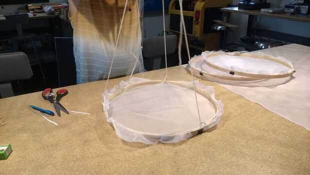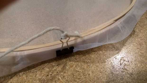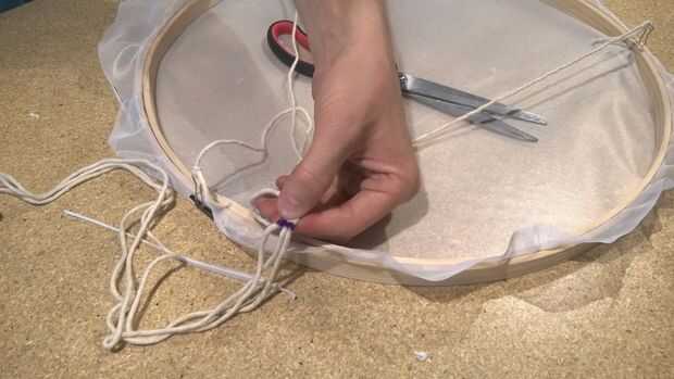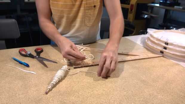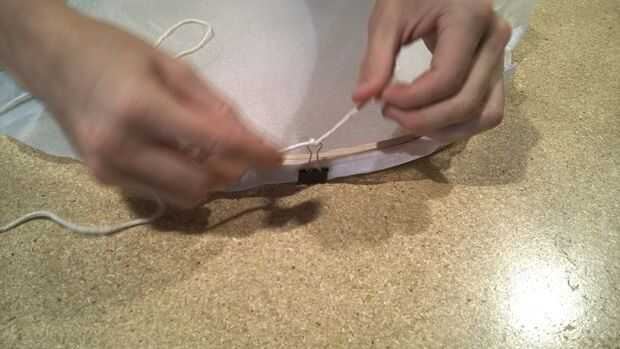 Medimos el lazo del largo que vamos a querer nuestro deshidratador y cortamos tres iguales (para los tres sujeta papeles). Anudamos un los sujeta papeles los tres lazos y los emparejamos para sobre esos mismos lazos anudemos el siguiente Controlair.