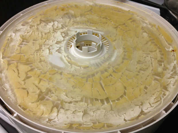 Seco durante varias horas hasta que el yogur esté completamente seca y escamosa.
