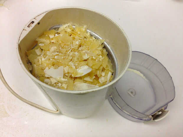 Las escamas puede moler en un molinillo de café (si te gusta el yogurt café!) o una amoladora de la especia.