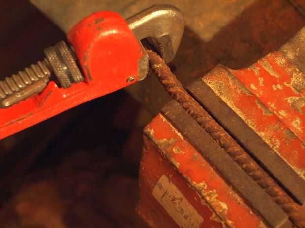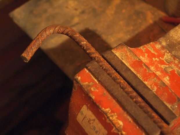 Mover la barra de acero para que el gancho de nuevo además de aproximadamente 50mm (2") se sobresale de la vice (o tubo).  Use una llave grande (o abrazadera del tipo de madera) para poner una leve curva en la barra, en la dirección opuesta a la curva del gancho principal.