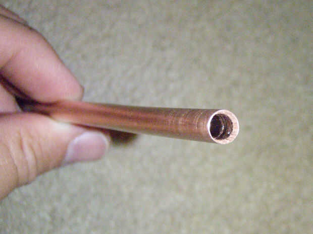 Usar una Dremel también para escariar hacia fuera de la tubería de cobre en un extremo a una forma de golpe como se muestra en la foto. También, asegúrese de que el otro extremo se escaria hacia fuera para por lo menos la identificación de la tubería para permitir que el tubo se deslice sobre el montaje del desagüe tire.
