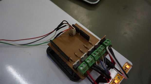 Hay cuatro partes importantes en esta sección. Un ventilador de flujo cruzado, calentador A 100 W, una fuente de alimentación y una unidad de control (arduino shield). Utilicé el método fotoquímico grabado mencionado en el paso siguiente para la fabricación de la pantalla, pero puede utilizarse cualquier otro procedimiento. Después de preparar el Monte protector las piezas a una hoja de Hylam (material no crítico pero debe ser no combustibles y capaz de soportar unos 200 grados C) como se muestra arriba y realizar las conexiones puede dirigir los cables debajo de la hoja de perforación de agujeros en it.on el lado de la cáscara hace un recorte de una toma alterna y cambia y montarlas hay. Luego conectar la toma al interruptor y el interruptor en la fuente de alimentación. Ruta el sensor de DHT22 del compartimiento de almacenamiento y fijarla allí. Compruebe las conexiones y coloque la electrónica de vuelta sobre la bandeja y usted es buenos ir.