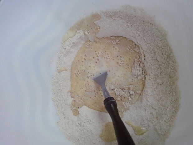 Mezclar hasta que se humedezcan los ingredientes secos.
