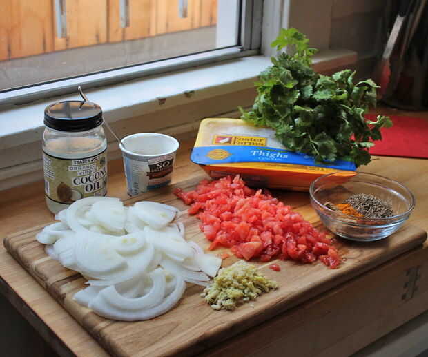 • 2-3 libras de pollo (voto para muslos sin hueso/piel aquí!)