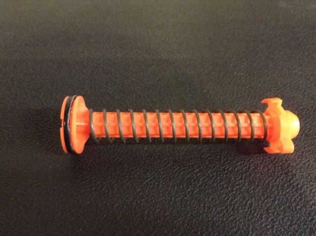 El longshot destacó es tan poderosa es debido a su émbolo directo. Prácticamente todas las pistolas n-strike, excepto el longshot, nitefinder y quizá algunos otros, todos tienen émbolos inversos, que son menos aire eficiente, pero mucho más barato fabricar. Por esta razón la línea elite es "elite". Tienen émbolos directos, que ayuda a aumentar la gama y son más caros hacer, así que tiene sentido por qué la línea elite es mejor que el anteriores blasters. de todos modos, la razón que la longshot es tan útil para modding es porque tiene un émbolo directo. Si quieres saber más, google se. Como se puede ver, yo he sustituido la Junta original por uno más robusto que obtuve de menards. No sé el tamaño, pero usted probablemente podría conseguir el mismo sello si pones eléctrica o cinta de teflón por debajo de la junta tórica. También he puesto un corte abajo k26 primavera en vez del muelle original (si se sustituye la primavera, excepto una vieja! Vienen prácticos cuando usted necesita un mejor resorte de una pistola similar!) para aumentar la velocidad de la que el aire sale y quitado el restrictor de aire.