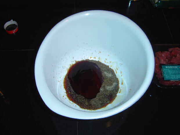 Yo todo lo vierte en el tazón de fuente sin medirlo... Como dije, yo solo comentarlo. Me aseguré que la salsa era suficiente para completamente marinado la carne aunque. No quería venir corto sobre cómo sabroso sería la carne.