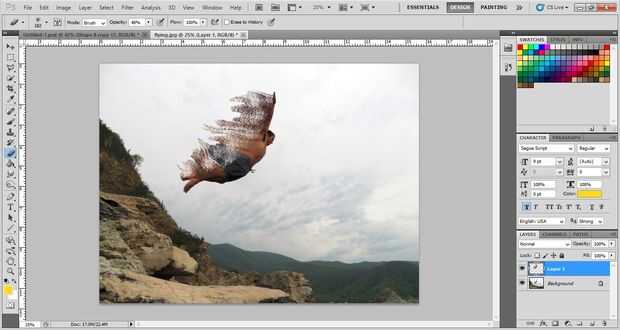 Ahora haga clic en, pero no arrastre, las áreas de su licuefacción. Esto borrará lo suficiente de él para conseguir un buen efecto. Si lo desea, puede cambiar la opacidad de su cepillo de goma para agregar un efecto algo tridimensional.