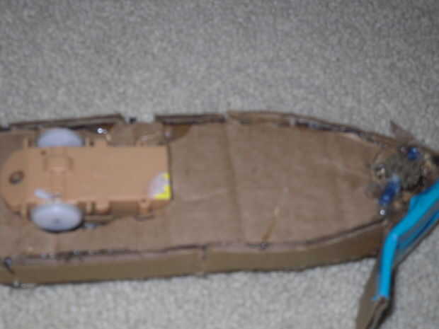 ahora como pegamento de la electrónica en la cáscara. luego poner la parte superior y pegamento que cierre. Asegúrese de que el pequeño motor con ruedas van en la el agujero que hiciste anteriormente.
