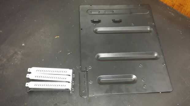 Voy a empezar con el corte hacia el "lado ranurado" en mi Motherboard, Tarjeta madre-mountingplate para el montaje de las tarjetas pci. Yo lo recorte y había pegado en la.