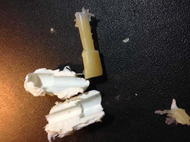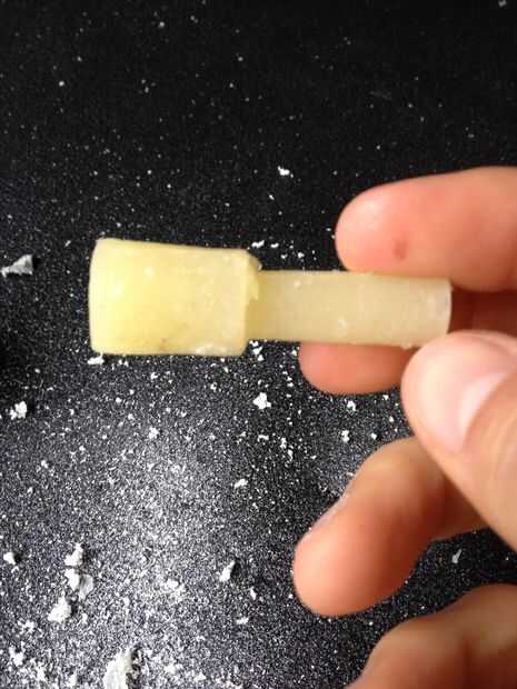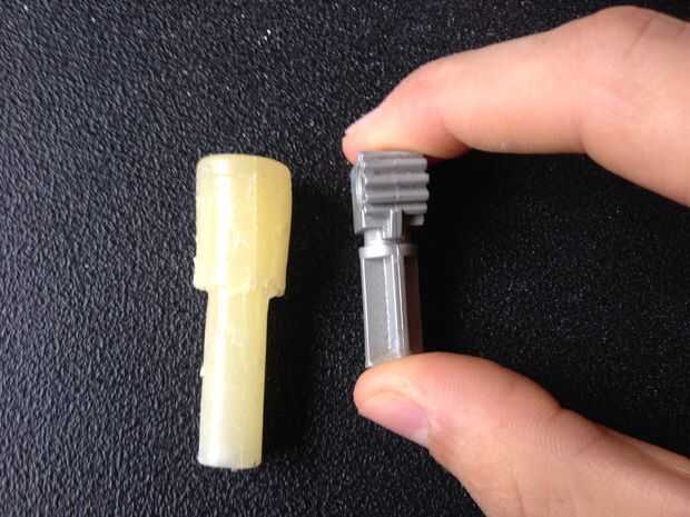 Después de que el pegamento endurece, abre el molde y sacar el pedazo casted. En mi caso, el pegamento no se pegaron a lo Oogoo como yo temía, que hizo más fácil trabajo ya estaba preparándome para cortar y lijar todos lo Oogoo de la pieza de curado epoxi.