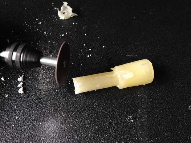 A continuación, tomar los ejercicios y abrir un agujero de 2mm en el lado mayor de la pieza de epoxi y otro agujero de 3,5 mm, pasando por la parte más, como se muestra en las fotos. Utilice el mismo taladro de 2mm para abrir un agujero de la lámpara así.