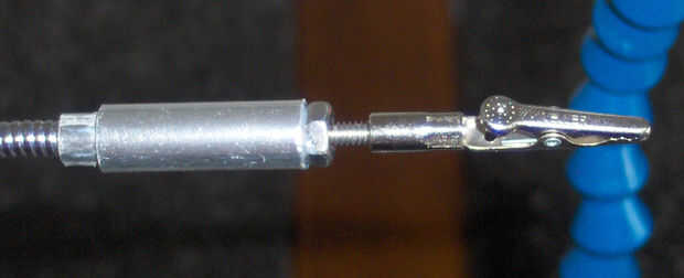 Así, para mi DeskSquid todo que hizo fue sacar el LED y Monte un tornillo de 1" 6/32 boca abajo en el agujero con algún epoxi, y usé una tuerca que me ayude a conseguir el centro y que se vea más limpia. Sólo necesita aproximadamente 1/4" hilo expuesto por la pinza u otro accesorio. Sea creativo con lo que tienes, algunos cables, manguera, etc..