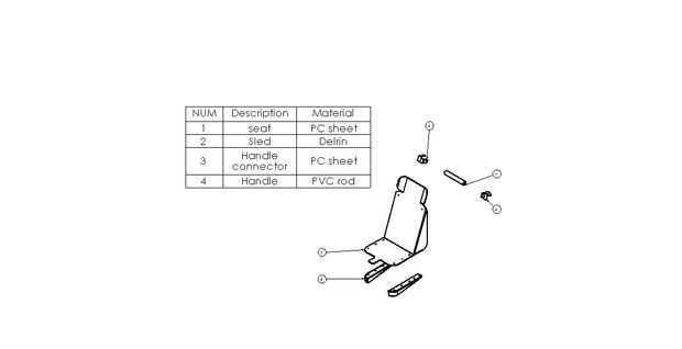 El asiento se hace de la hoja de la PC que fue doblada para dar forma por termoformado.