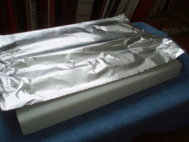 Si no está cómodo mirando hacia una luz, cubrir la superficie de luz con papel de aluminio - plan de dejar los orificios de ventilación sin cubrir.