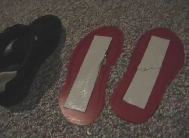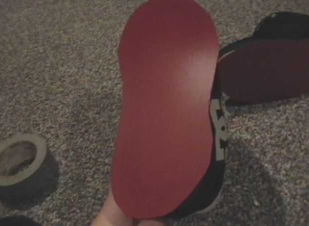 Usé cinta adhesiva para hacer mío. Rodó la cinta en rollos de largo como se indica a continuación en la figura (a) continuación, había pegado a mis zapatos a los patines.