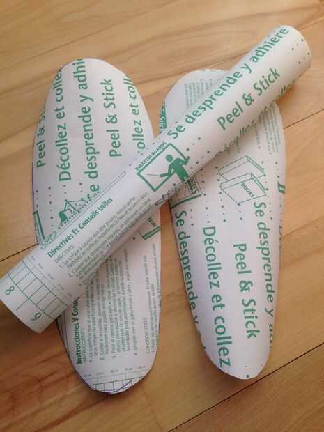 Deposite la suela de la zapatilla en trazador de líneas adhesivo útil (lado de papel hacia arriba).