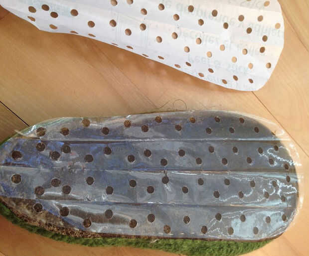 Paso 4: Perforar agujeros en su plantilla y aplicarla a la planta del pie